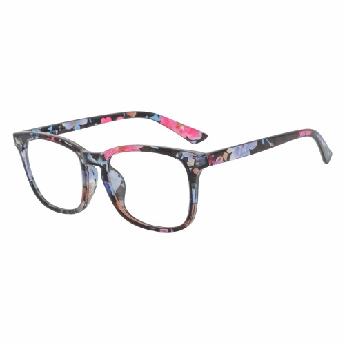 HARPER – Classic Horn Rimmed Blue Light Glasses Floral Clear Lens