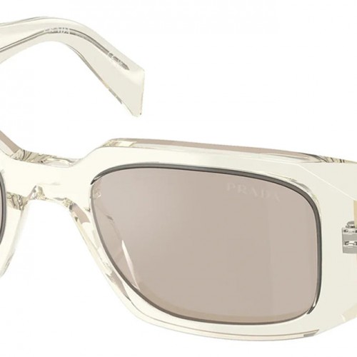 Prada PR 17WS 19X30N Rectangle Plastic Beige Sunglasses with Brown Mirror Lens 49mm