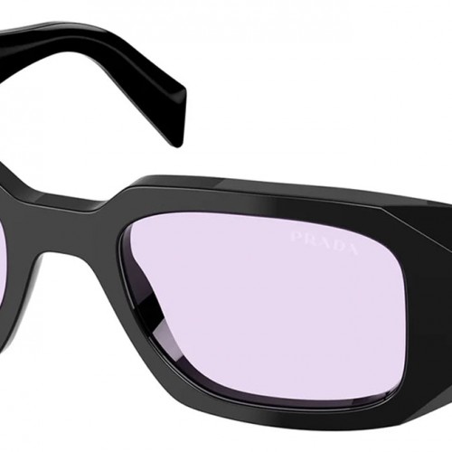 Prada PR 17WS 16K40J Rectangle Plastic Black Sunglasses with Purple Lens 49mm