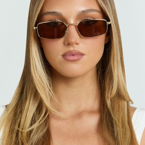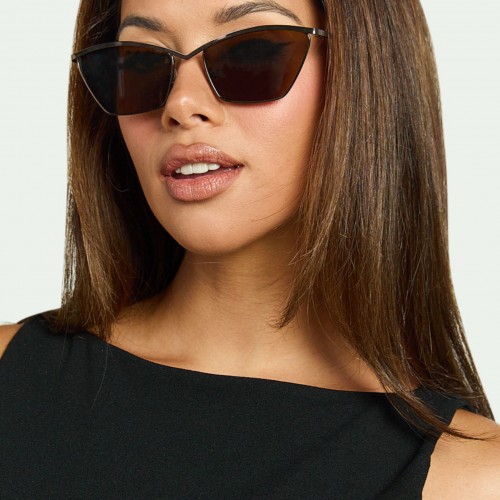 Alodia Sunglasses – Cat Eye Thin Rim Sunglasses in Brown NoSize