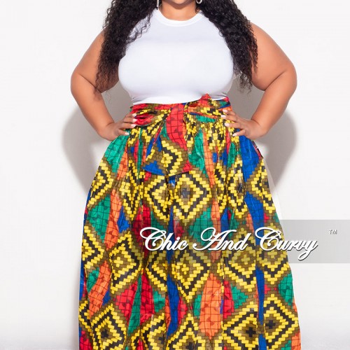 Final Sale Plus Size High Waist Maxi Skirt with Tie in Multi Color Diamond Print One Size Up to 20