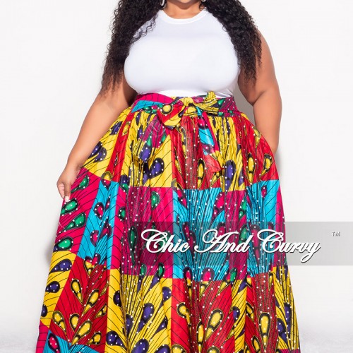 Final Sale Plus Size High Waist Maxi Skirt with Tie in Multi Color Design Print One Size Up to 20