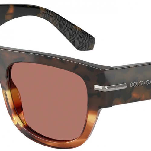 DOLCE & GABBANA DG 4484 3438M6 Square Havana Warm Brown Acetate Sunglasses with Bordeaux Lens 54mm