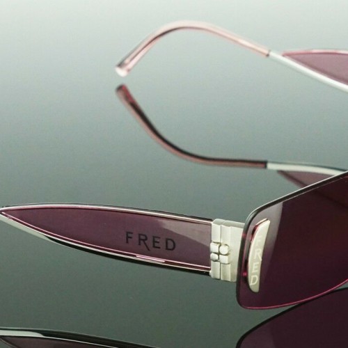Fred Lunettes Designer Marine Percee Women’s Sunglasses P F4 606 Champagne Brushed Gold (Purple lens)