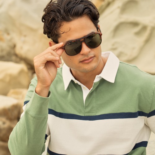 Matte Amber Tortoise / Brown Bamboo + Grey-Green Polarized Lens