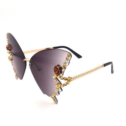 Vi90146 Women’s Retro Classic Butterfly Shape Diamond Rimless Sunglasses UV Blocking Sunglasses