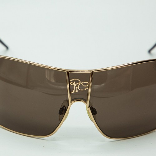 Original 1980s Ferr shield sunglasses with iconic flair, featuring tortoise temples, a stunnig brown lens and details in metal gold. A vintage model looking great on both men and women.
