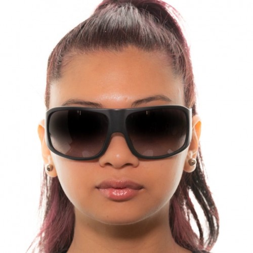 2000s POLICE sunglasses featuring a wrap frame in brown acetate and matching brown lenses with unique side lenses and thin temples