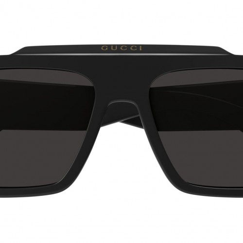 Balenciaga sunglasses model BB0310SK from Everyday eyewear line, color code 001 shiny solid black recycled acetate, rectangle frame shape with solid grey lens.