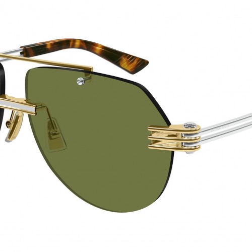 Bottega Veneta sunglasses model BV1342S aviator metal frame color code 003 shiny gold with silver temple and solid green lenses. Authorized Bottega Veneta online reseller. Your glasses will come with the original case and accessories and will be covered by a 12-month global warranty.