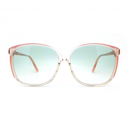 - Featuring a mottled pink acetate trim and transparent nose bridge.