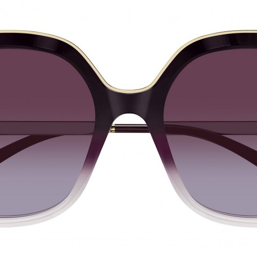 Chloé CH0327S 003 sunglasses for women, featuring shiny gradient opal brown to transparent cream rectangular recycled acetate frame and triple gradient violet / honey / brown bio nylon lenses. Brand line: Chloé. Style code: CH0327S. Color code: 003. Made in Italy. Authorized Chloé online reseller. Your glasses will include the original case and accessories and are covered by a 12-month global warranty.