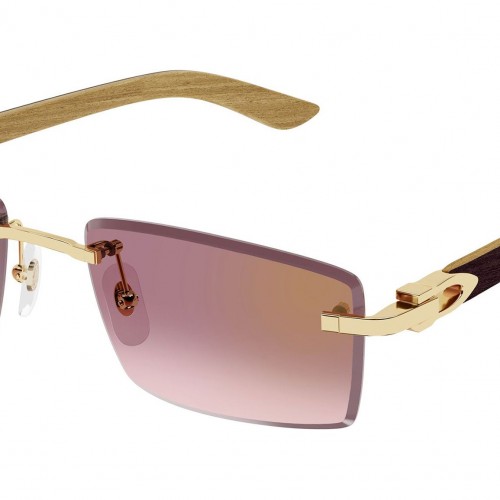Cartier CT0582S 002 sunglasses for men, featuring smooth golden finish rectangular metal frame and graded bordeaux with a golden flash nylon lenses. Brand line: Exception. Style code: CT0582S. Color code: 002. Made in France. Authorized Cartier online reseller. Your glasses will include the original case and accessories and are covered by a 12-month global warranty.