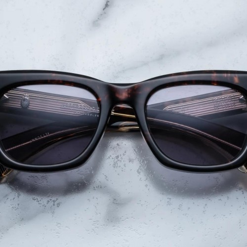 The fluid lines and fine embellishments of Art Deco find their full realization in these ‘50s-inspired spectacles made for the modern city, a bold acetate frame with a distinct titanium brow bar that speaks to these self-assured spectacle’s subtle old-world sensibility.
