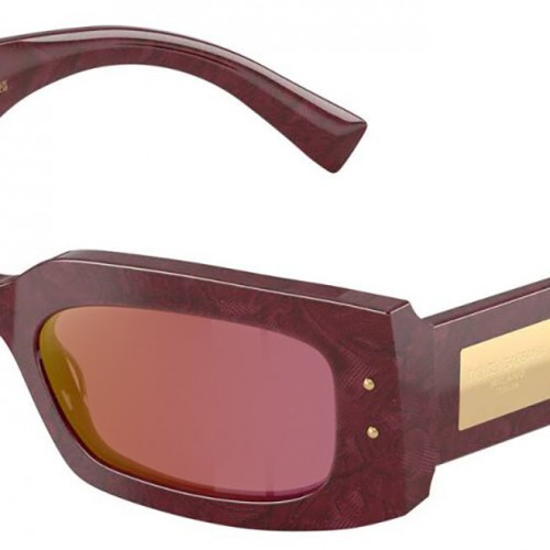 DOLCE & GABBANA DG 4479 3442D0 Rectangle Bordeaux Lace Acetate Sunglasses with Dark Violet Mirror Red Lens 55mm