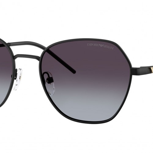 Emporio Armani EA2161 30018G sunglasses, featuring matte black geometric metal frame and grey gradient polycarbonate lenses. Adjustable nosepads. Brand line: Modern. Style code: 0EA2161. Color code: 30018G. Authorized Emporio Armani online reseller. Your glasses will include the original case and accessories and are covered by a 12-month global warranty.