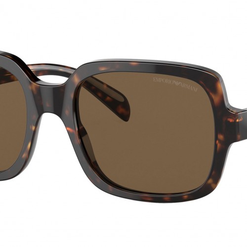 Emporio Armani EA4195 502673 sunglasses, featuring shiny havana squared acetate frame and dark brown polyamide lenses. High bridge fit. Brand line: Trend. Style code: 0EA4195. Color code: 502673. Authorized Emporio Armani online reseller. Your glasses will include the original case and accessories and are covered by a 12-month global warranty.