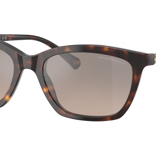 Emporio Armani EA4238 50266I sunglasses, featuring shiny havana cat eye acetate frame and brown grad grey mirror silver bio polyamide lenses. High bridge fit. Brand line: Modern. Style code: 0EA4238. Color code: 50266I. Authorized Emporio Armani online reseller. Your glasses will include the original case and accessories and are covered by a 12-month global warranty.