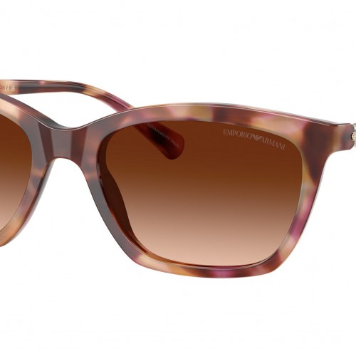 Emporio Armani EA4238 619674 sunglasses, featuring shiny havana red cat eye acetate frame and gradient brown bio polyamide lenses. High bridge fit. Brand line: Modern. Style code: 0EA4238. Color code: 619674. Authorized Emporio Armani online reseller. Your glasses will include the original case and accessories and are covered by a 12-month global warranty.