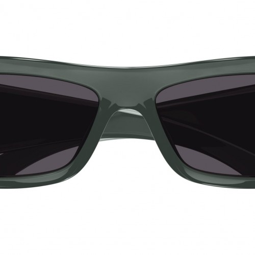 Gucci sunglasses model GG1492S Fashion eyewear collection rectangle injection frame featuring shiny transparent olive green frame and green lens.
