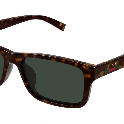 Gucci GG1986SA 002 sunglasses for men, featuring shiny dark havana rectangular injection frame and solid dark green bio nylon lenses. Brand line: Sign. Style code: GG1986SA. Color code: 002. Made in Italy. Authorized Gucci online reseller. Your glasses will include the original case and accessories and are covered by a 12-month global warranty.