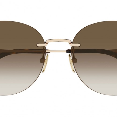 Gucci GG2068SA 003 sunglasses for women, featuring shiny transparent light brown rectangular recycled acetate frame and solid brown bio nylon lenses. Brand line: Sign. Style code: GG2068SA. Color code: 003. Made in Italy. Authorized Gucci online reseller. Your glasses will include the original case and accessories and are covered by a 12-month global warranty.