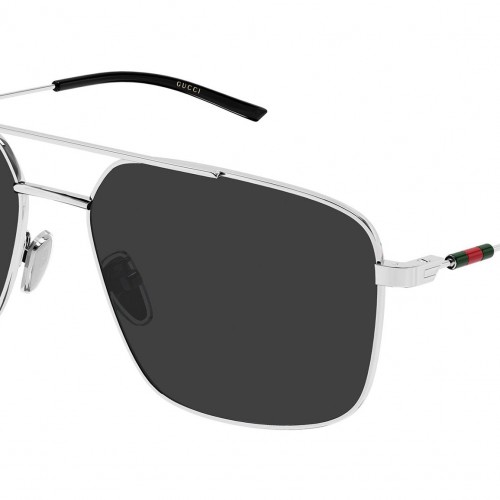 Gucci GG2096SA 001 sunglasses for men, featuring shiny silver rectangular metal frame and solid grey bio nylon lenses. Brand line: Sign. Style code: GG2096SA. Color code: 001. Made in Italy. Authorized Gucci online reseller. Your glasses will include the original case and accessories and are covered by a 12-month global warranty.