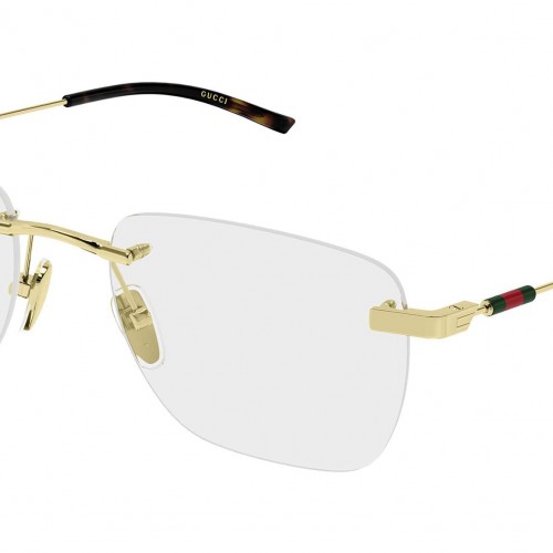 Gucci GG2099O 002 glasses for men, featuring shiny endura gold rectangular metal frame and demo lenses. Brand line: Sign. Style code: GG2099O. Color code: 002. Made in Italy. Authorized Gucci online reseller. Your glasses will include the original case and accessories and are covered by a 12-month global warranty.