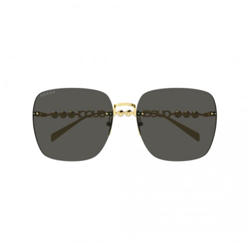 These GUCCI GG1923SA sunglasses combine expert craftsmanship with sophisticated style. Featuring a slim metal temple adorned with pearls, they frame the iconic Gucci cut-out logo for a refined, feminine look. The oversized square lenses offer bold coverage, while the mix of gold and silver metal structures contrasts elegantly with dark and colored lenses. Distinctive Gucci lettering cut-outs on the temple enhance their luxury appeal, making these sunglasses a statement accessory for discerning fashion enthusiasts.