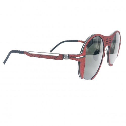 This unique round style sunglass is made by HAPTER. It features mirrored lenses and includes a special wooden box to celebrate the 10th anniversary of HAPTER (2013-2023).
