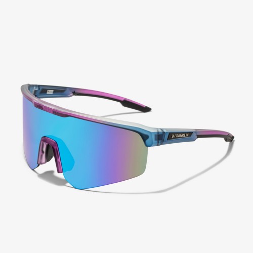 The Hurricane Blue model stands out for its aerodynamic frame and distinctive finish. It features a 152 mm front and 142 mm lenses, precisely designed to optimize airflow and reduce wind resistance. The 140 mm temples display our emblem on both sides, while silicone pads on the tips and nose bridge ensure a secure and comfortable grip.