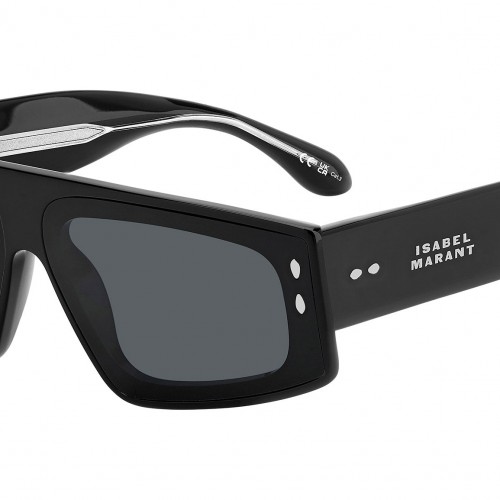 Isabel Marant IM 0169/G/S 580 IR black acetate rectangle Sunglasses. Sleek, stylish and smooth: lens and frame become one with Isabel Marant’s modernised eyewear edit, flaunting an innovative flush-fitting design for a statement double-frame effect. Shaped with an angular flat-top front and oversized temples, these acetate sunglasses radiate glamorous attitude with edgy undertones. Complete with leaf-shaped end tips and silver leaf rivets on the front and temples in celebration of the brand’s hallmark motif.
