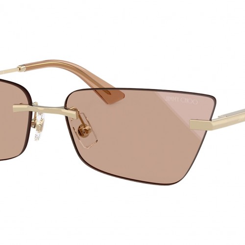 Jimmy Choo JC4012 300613 sunglasses for women, featuring pale gold cat eye metal frame and brown gradient bio polyamide lenses. Adjustable nosepads. Brand line: JC Monogram. Style code: JC4012. Color code: 300613. Authorized Swarovski online reseller. Your glasses will include the original case and accessories and are covered by a 12-month global warranty.