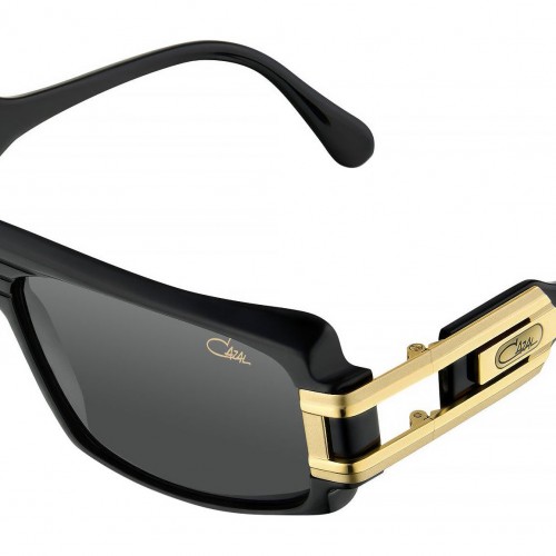 Cazal Model 164/3 sunglasses featuring black-gold rectangular acetate frame and grey gradient lenses. Brand line: Legends. Style code: 164/3. Color code: 001. Authorized Cazal online reseller. Your glasses will include the original case and accessories and are covered by a 12-month global warranty.