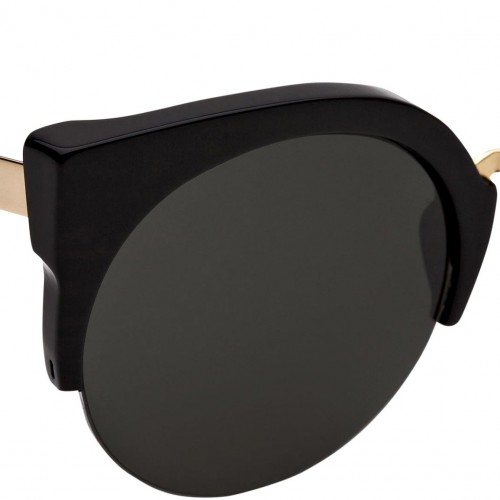 Lucia Francis Black Gold sports a particularly refined combination of materials, details and finishings for a subtly sassy feminine silhouette. Characterized by bold rounded lenses, this model pairs a black acetate for the front and earpiece, while a sleek golden metalwork defines the arms and bridge. Lucia Francis Black Gold sports lenses by Zeiss in black. The box contains a semi-hard case and a cleaning cloth.