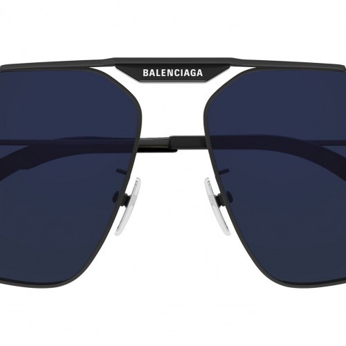 Montblanc MB0353S 007 sunglasses for men, featuring shiny black panthos recycled injected acetate frame and solid blue glass lenses. Brand line: Snowcap. Style code: MB0353S. Color code: 007. Made in Italy. Authorized Montblanc online reseller. Your glasses will include the original case and accessories and are covered by a 12-month global warranty.