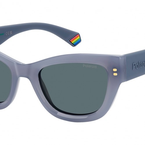 Polaroid PLD 6237/S/X MVU C3 sunglasses for women, featuring azure cat eye polycarbonate frame and blue polarized lenses. Trendsetters will love these women’s sunglasses from Polaroid, a fresh interpretation of the cat-eye shape. The bold front is multifaceted thanks to bevelling around the lenses, with a sculptural yet structured design. What’s more, the frames can be fitted with prescription sun lenses. The printed rivets are an added accent. The temples are equally striking: they’re maxi in their proportions, covered in rubber for a soft touch, and trimmed by a raised Polaroid logo. Brand line: Cool. Style code: 207839. Color code: MVU C3. Authorized Polaroid online reseller. Your glasses will include the original case and accessories and are covered by a 12-month global warranty.