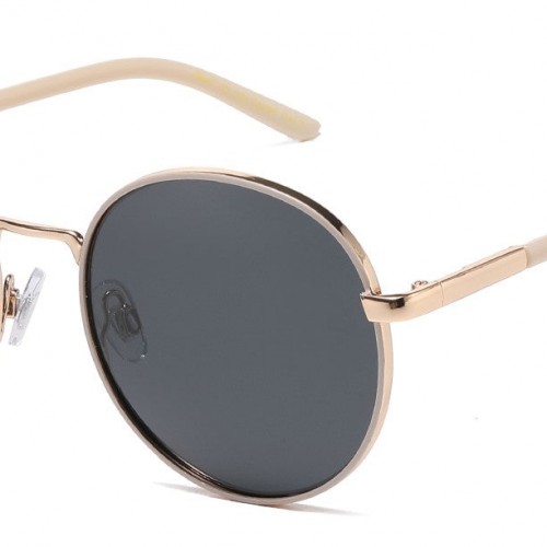 Discover Giselle Metallic Round Sunglasses, crafted from premium nickel silver with a chic gold frame and polarized lenses in smoke and brown. Featuring durable metal hinges, these stylish sunglasses are perfect for retailers looking to enhance their inventory. Available in units of a dozen for a fashionable, trendy selection.