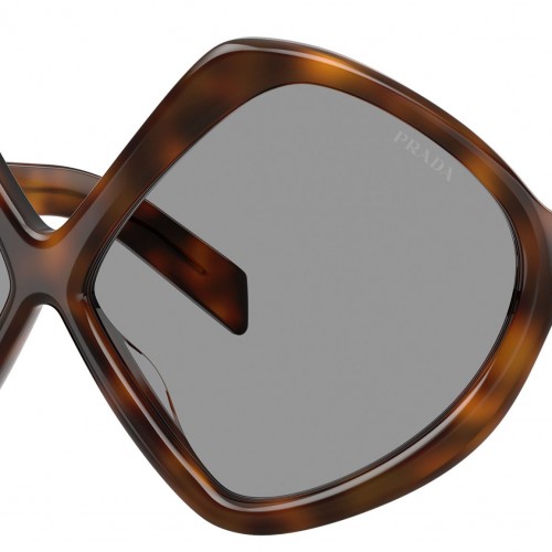 Prada PR B21S 20D50Q sunglasses for women, featuring juniper tortoise geometric acetate frame and grey bio polyamide lenses. High bridge fit. Brand line: Catwalk. Style code: PRB21S. Color code: 20D50Q. Made in Italy. Authorized Prada online reseller. Your glasses will include the original case and accessories and are covered by a 12-month global warranty.