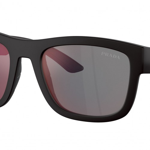 Prada Linea Rossa sunglasses model PS 01ZS color code DG008F featuring black rubber full rim nylon frame and polyamide dark grey mirror blue/red lenses. Authorised Prada Linea Rossa Store. Your sunglasses will come including the original case and accessories and will be covered by 12 month global warranty.