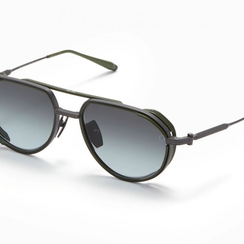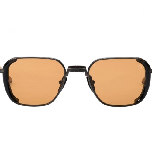 A house logo is discretely etched atop custom brow bars. Striking double rims outlining lenses are balanced by equally compelling perforated side shields. Temples, embellished with Akoni’s signature tactile knurling pieces, are finished off with branded tips and custom screws—and all of these one-of-a-kind embellishments are hand-crafted by respected Japanese artisans.