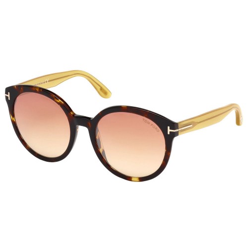 Tom Ford Arabella Cat Eye Style Women’s Sunglasses Having Blonde Havana Color Plastic Frame With Blue Gradient Lens.