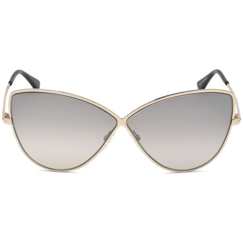 Tom Ford Elise Cat Eye Style Women’s Sunglasses Having Shiny Rose Gold Color Metal Frame With Grey Mirrored Lens.