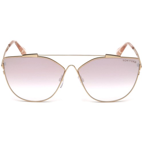 Tom Ford Jacquelyn Cat Eye Style Women’s Sunglasses Having Gold Color Metal Frame With Violet Mirrored Gradient Lens.