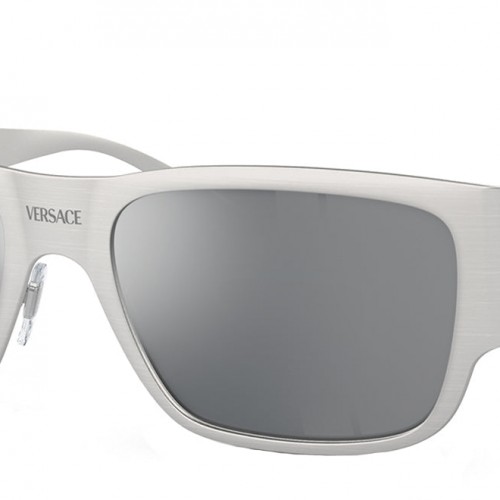 Versace VE 2262 12666G Square Metal Silver Sunglasses with Light Gray Mirror Lens 56mm