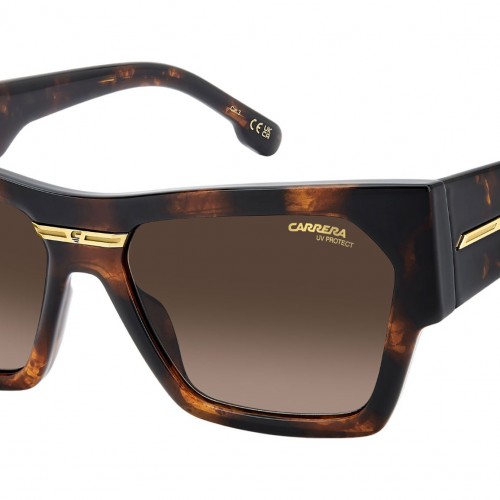Carrera VICTORY C 19/S 086 HA sunglasses for women, featuring havana rectangular eco polyamide frame and brown shaded lenses. Made-in-Italy sunglasses with a bold attitude. These Carrera frames feature a modern cat-eye front and new oversized temples for the season. The Victory ‘C’ metal plaque adds an iconic touch. Available in classic black and gold or seasonal colours, including a transparent option. Brand line: Flag. Style code: 208322. Color code: 086 HA. Authorized Carrera online reseller. Your glasses will include the original case and accessories and are covered by a 12-month global warranty.