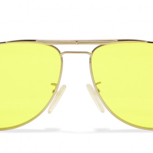 - A striking aviator frame with angular edges.
